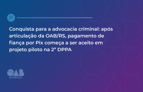A pauta integra uma série de tratativas institucionais conduzidas pela OAB/RS desde o início da atual gestão, em 2022, para viabilizar o uso do Pix no pagamento de fiança, conforme registrado em reuniões com a Chefia da Polícia Civil, com representantes do Tribunal de Justiça do Rio Grande do Sul (TJRS) e da Secretaria Estadual da Fazenda e em deliberações dos Colégios de Presidentes da instituição.